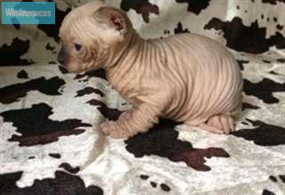 J' adore les câlins, je suis déjà très prometteur ,dentition parfaite, je suis totalement nu (donc sans poil, très tippé, je suis issus d'une porté de 5 chatons tous magnifiques!! et surtout très propre. Je suis prêt à partir dans ma nouvelle famille, je suis vacciné, pucé et sevré, mon numéro de puce est : 250297962281255. Pour amples informations, veuillez contacter mon maître.