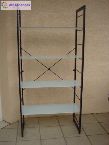 vends une étagère montant métal ,plateaux en verre H 163 L80 P40