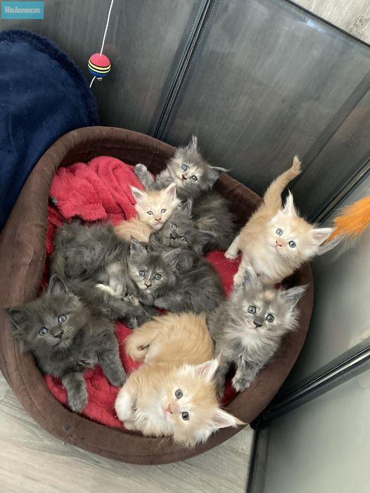 6 chatons MAINE COON mâles et femelles Les chatons sont vaccinés,pucés,vermifugés,looftés.Élevés en famille,ils sont sociables,propres,joueurs et très câlins.Les chatons sont sévrés.Ils sont destinés à la compagnie ou à la reproductions.