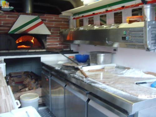Il y a un four a pizza au gaz, peut mettre jusqu'à 6 pizzas de 33cm a la fois.
