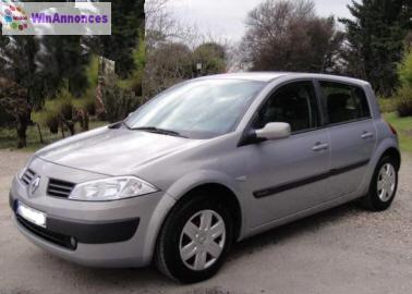 Vends Megane II 1.6 pack authentique, essence, 4 portes, allumage automatique, fermeture centralisée, coul grise, carnet entretien, contrôle techn OK, peu utilisée.