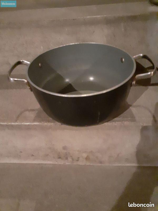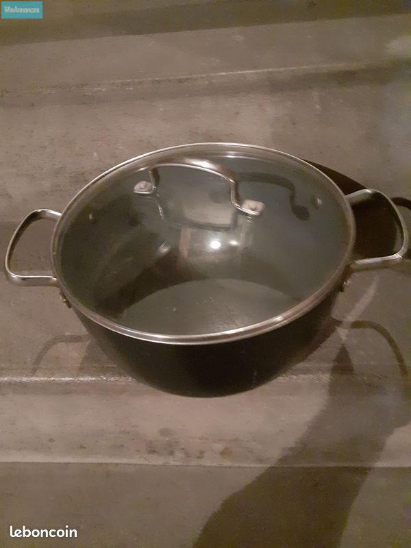 vends une cocotte de cuisine on fonte avec son couvercle en verre transparent état neuf