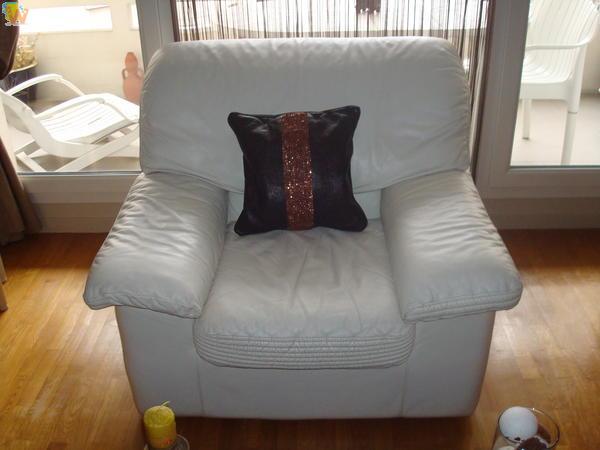 A DONNER deux canapés en cuir Le premier canapé 2 places fait 90cm de profondeur, 1métre 50 de longueur, 80cm de hauteur. Les assises sont en daim marron.Le second canapé 1 place a la même profondeur et la même hauteur que le premier. il fait 97cm de longueur