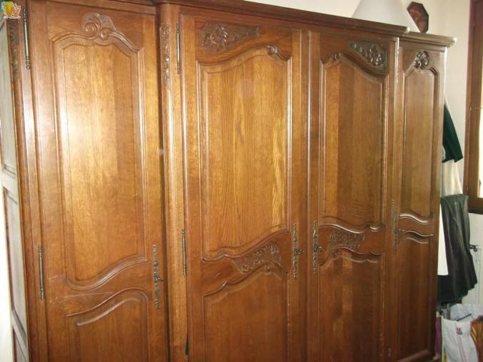 A vendre : Chambre style Régence : armoire 4 portes - lit à barreaux 140x190 cm - 2 chevets.