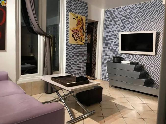 Composé d'un salon avec canapé convertible, tv écran plat, coin nuit avec lit double et rangements.
