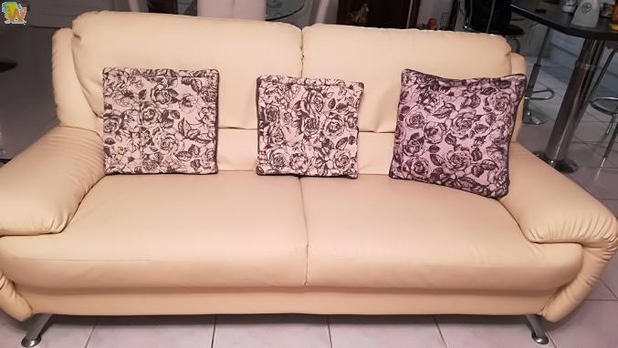 Canapé cuir blanc crème 3 places, très bon état, pieds design métalliques, disponible